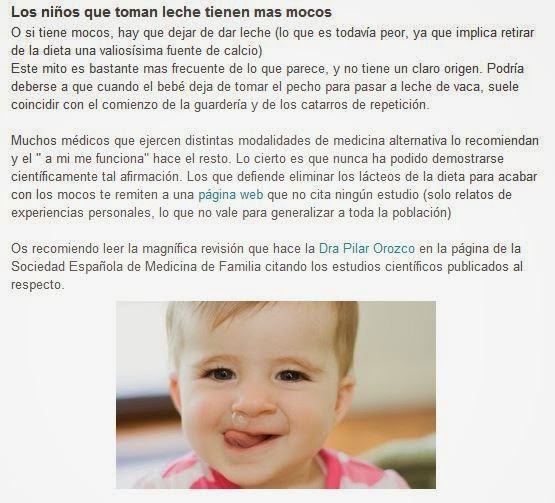 La única relación entre los mocos y el consumo de leche es su relación temporal: los niños de 2,3, 4 años son los que consumen mas leche, y también los que tienen mas mocos. Sobre todo si van a guardería.