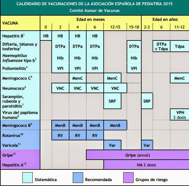 Acaba de empezar el año y la Asociación Española de Pediatría ya ha publicado el calendario vacunal recomendado para el 2015.